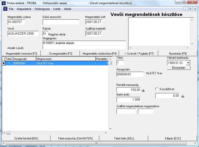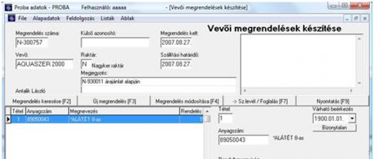A program lehetővé teszi a rendelési mennyiségek nyilvántartását is. A vevői megrendelések és a minimum készlet segítségével könnyen előállíthatja szállítói megrendelését. Folyamatosan nyomon követheti a raktárkészlet mozgásokat, logisztikai láncokat, valamint elvégezheti leltározását, mennyiség és raktári pozíció szerint is. A modul többféle lehetőséget ad a vásárlói kedvezmények kezelése. Kialakíthatja kiskereskedelmi és nagykereskedelmi árlistáját is. | ![]() |